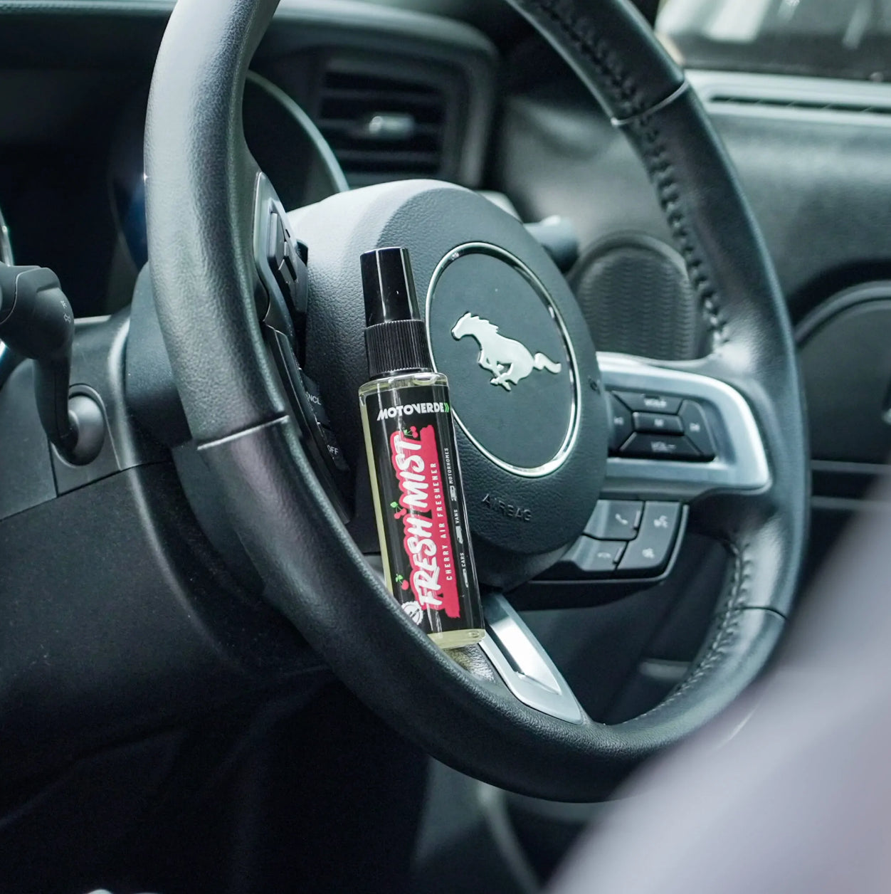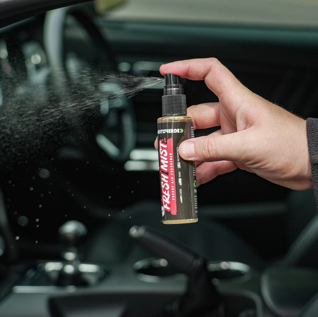 - Spray Fresh Mist Cherry lightly onto footwell carpets and any other desired location.